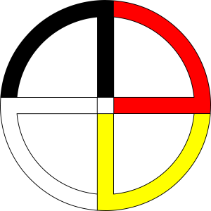 The Lakotas believe that all good things are represented with the circle and the Medicine Wheel is sacred. The four parts of the Medicine Wheel are the teachings about life, the seasons, animals, nations and directions. The center represents the earth and sky. Each direction: North, East, South and West encompasses the teaching of life and each person’s place in society.
